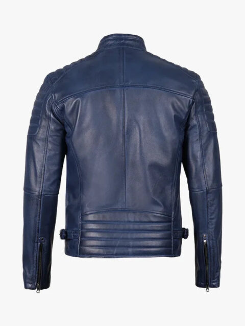 Mens Real Leather Distressed Blue Cafe Racer Jacket