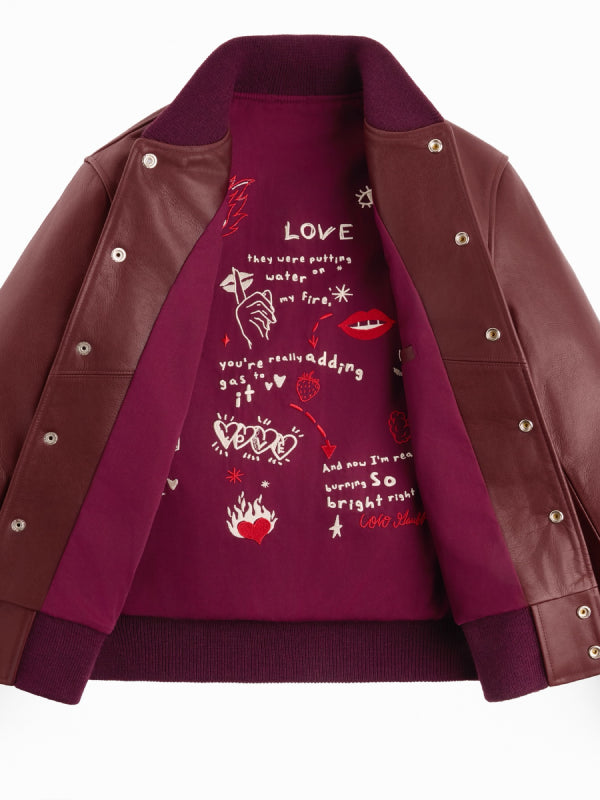 Recreated – 2025 US Open Coco Gauff New Balance Burgundy Leather Bomber Jacket