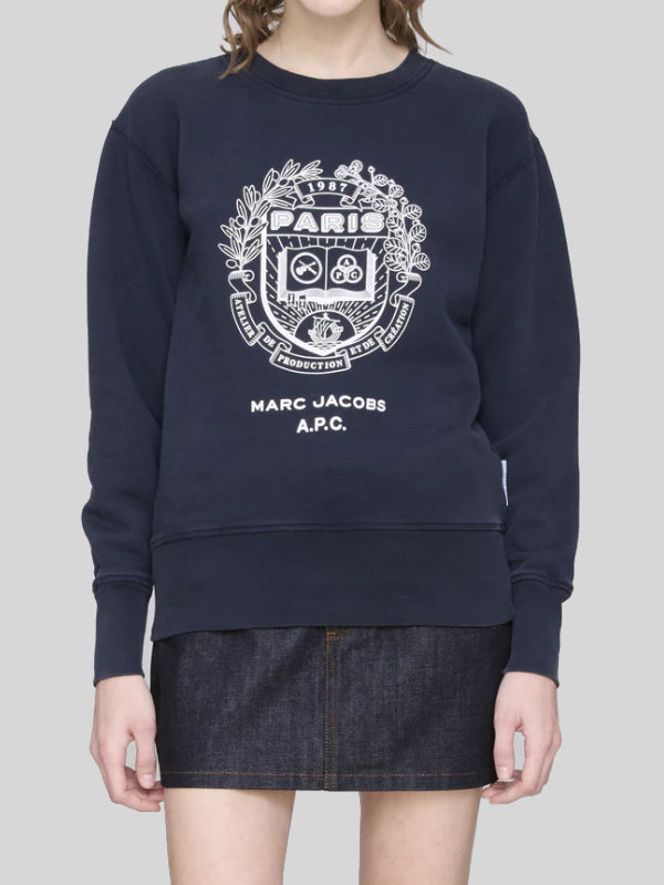 Recreation – A.P.C. x Marc Jacobs. The Shrunken Paris Crewneck Sweatshirt Blue