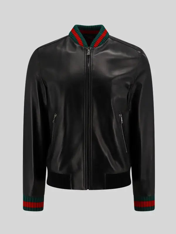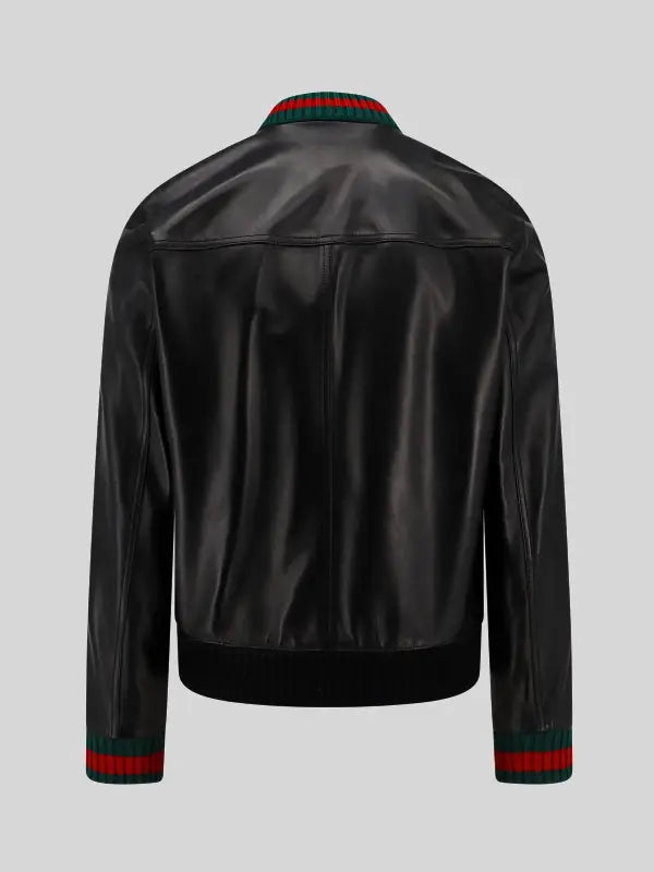 Adam Devine Gucci Leather Bomber Jacket Black