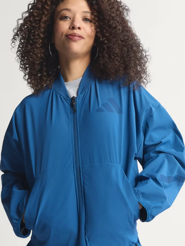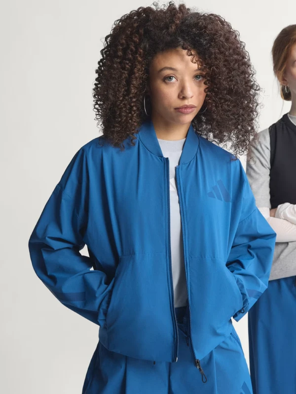 Women’s Adidas Z.N.E. Woven Bomber Jacket Blue Navy lets you sport the mileage with a heritage look that nods to your lineage. Get ready to pound the pavement and cross paths with the better version of yourself because this update is here for a limited time. Shop now at The Walter Jackets Store.