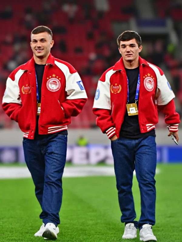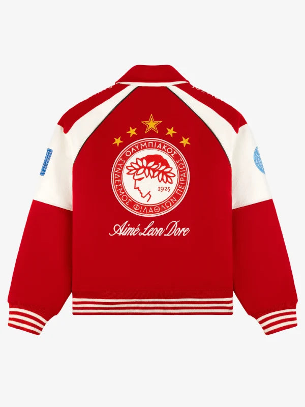 ALD Olympiacos F.C. Varsity Jacket — classic varsity style with bold Olympiacos branding and cozy comfort for fans. Shop at The Walter Jackets Store