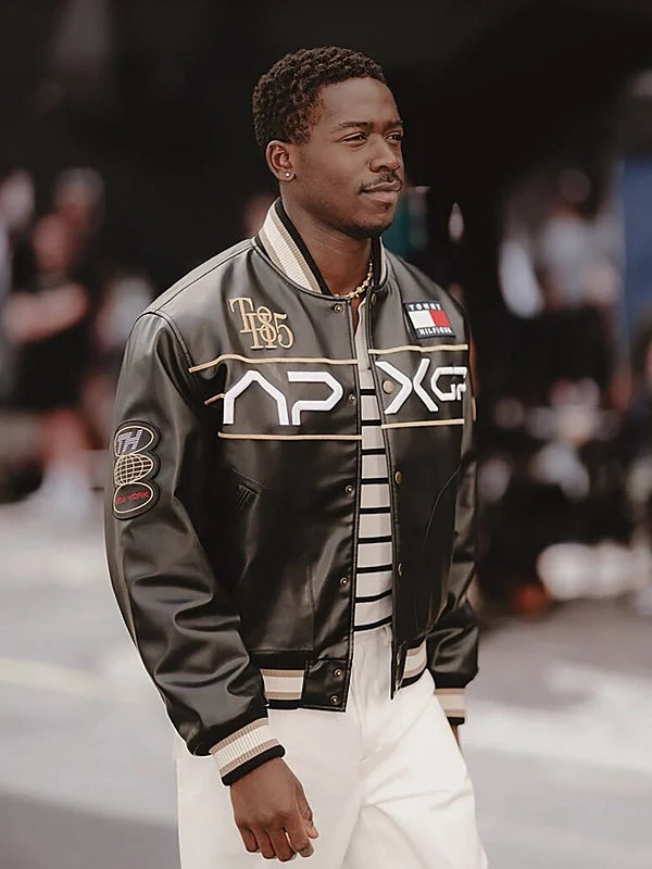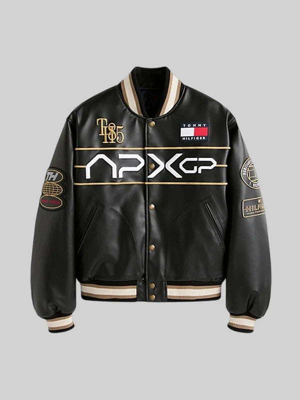 Recreated – Tommy Hilfiger APXGP F1 Movie Faux-Leather Black Varsity Jacket