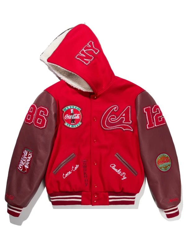 Recreated – Awake NY x Coca-Cola Hooded Letterman Varsity Jacket Red