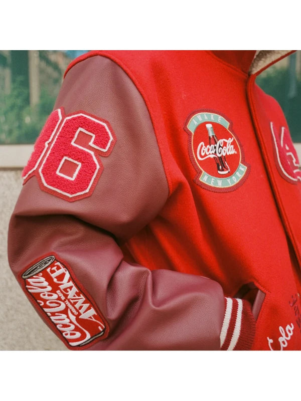 Awake NY x Coca-Cola Fleece Varsity Jacket with bold co-branded graphics and classic street style. shop at The Walter Jackets Store