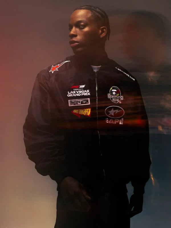 This new jacket is built as part of the new Fall / Winter collection and has a strong connection with the streets, so much so that you can’t spell streetwear without the fancy motifs over this smooth black jacket. The name BAPE x F1 rolls over the tongue smoothly just like the outerwear that you see which is imperial and rugged enough to become part of your collection. You can never have enough of this bomber jacket that is a great relief from the GORE-TEX and y2k fashion scene. Zero in on the new BAPE x F1 Black Bomber Jacket For Sale. Shop now at The Walter Jackets Store. Peace.