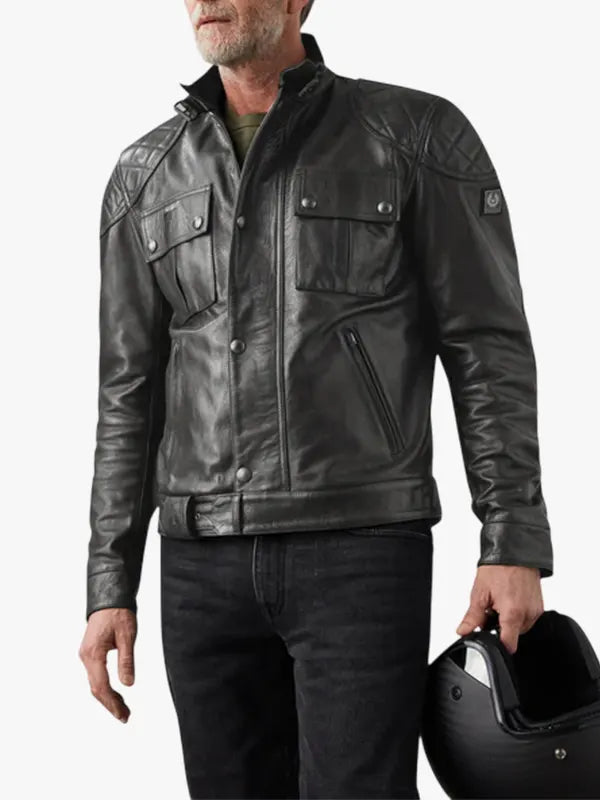 Re-Creation – Men’s Brooklands Black Motorcycle Leather Jacket for Sale