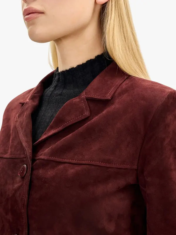 Women’s Lambskin Leather Short Suede Jacket – Burgundy