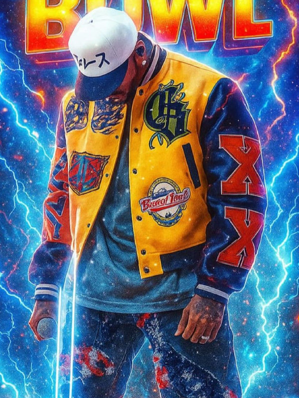 Imagine being in the Breezy Bowl and the countdown began on Chris Brown’s entrance and as soon as he stepped on the scene, he took the spotlight with the Breezy Bowl Jacket Chris Brown, a VIP varsity jacket that is stranger to nobody. And when the Breezy Bowl hits London, you know it is gonna sell off the stadium in less than a minute with one of the hardest stage entrances and the most melodious singing. Tempo? Check. Retro duds? Check. Statement? Made.
