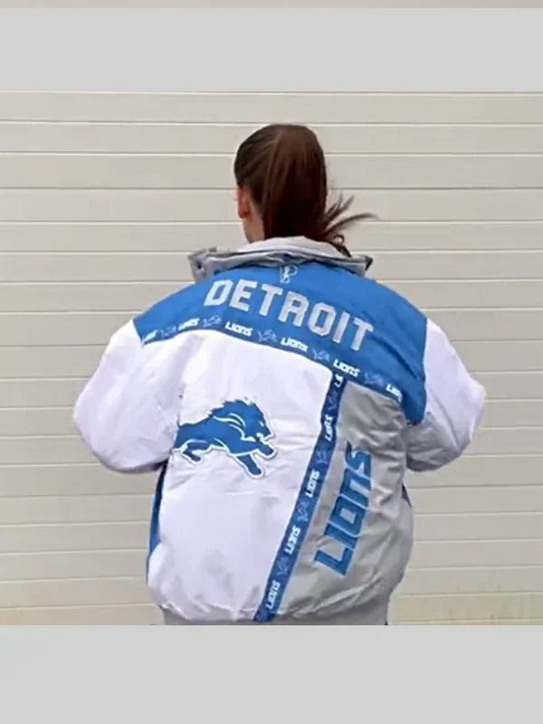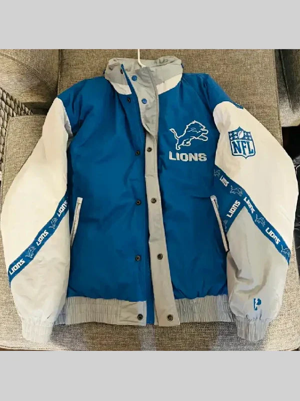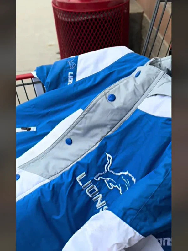 Recreated – Unisex Vintage Costco Detroit Lions Jacket Blue and White