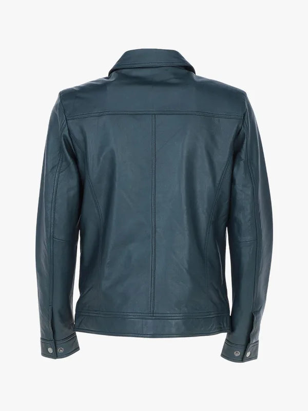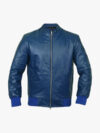Deshawn Blue Bomber Leather Shirt Jacket For Men