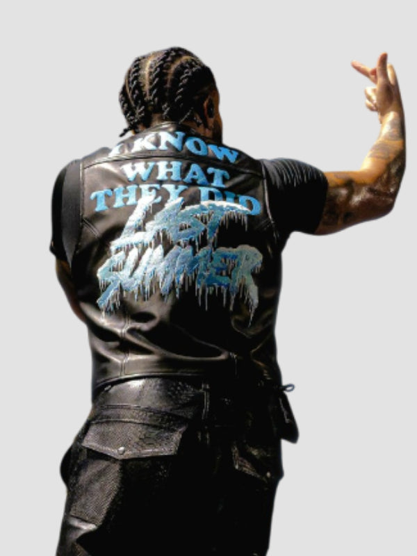 Drake made boss moves at the 2025 Wireless Festival while donning this leather vest, sending a clear message to the K-Dot fans that champagne papi is still the king and still here, rolling and rocking the game with his melodious emcee power that took us back to the days when Forever, Drake’s classic hit, was getting massive radio play. His performance was a highly anticipated one, and it definitely reignited the love for the Toronto MC Drake among his fans. Here is to the fandom and craze for Drake. Grab the Drake I Know What They Did Last Summer Leather Vest and be on the frontline of representing the rapper in the most iced-out look.