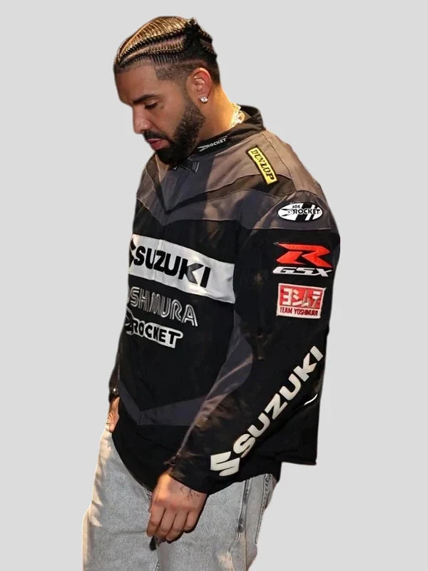 Forget OVO because Drake went solo on the world of motorsport, taking our wardrobe bike ride deep into the abyss of elevated staples. What we have here today is more than a rim-job, it is the nitro-boost that only the real ones are gonna invest into. Embrace your inner rider with the Drake Suzuki Racing Jacket.