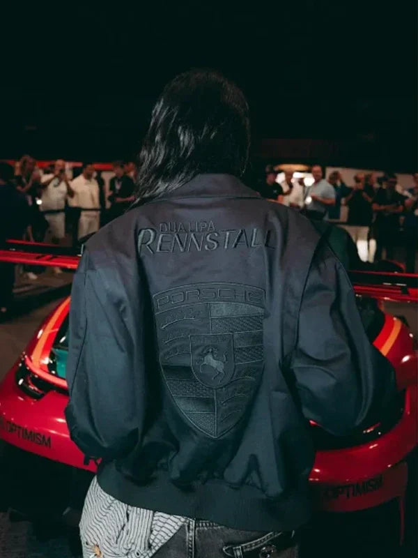 No matter what you put together, you can’t do it better than the music superstar Dua Lipa, who took race-ready duds to the next level with her Dua Lipa Rennstall Porsche jacket.