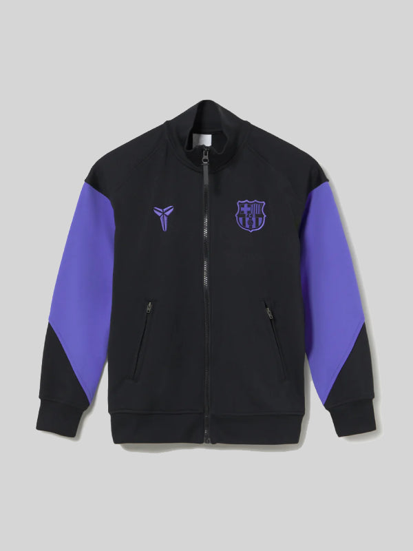 Ever heard of the Mamba mentality? Well, the Kobe Barcelona Anthem Jacket 25-26 in black and purple is what it is about. Wouldn’t you know, this is the biggest inspiration for aspiring athletes who are grinding in silence and training while the rest of the world sleeps.
