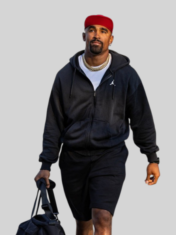 Jalen Hurts took the training camp with a Fresh Prince of Bel-Air look. Watch out, it is the return of the best seller in your rotation. Shop Jalen Hurts Training Camp Jordan Hoodie Black now at The Walter Jackets Store and copy the look of your all-time favorite QB.