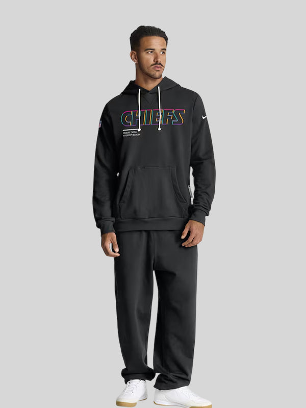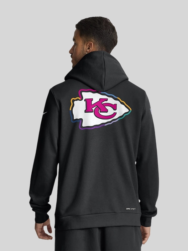 The Men’s Kansas City Chiefs Nike Black 2025 NFL Crucial Catch Sideline Standard Issue Dri-FIT Hoodie will be worn by the coaching staff and the team-members during the week 4 to 6 games that includes a highly anticipated home game of the Kansas City Chiefs and many exciting battles such as KC Chiefs vs. Baltimore Ravens, Jacksonville Jaguars, Detroit Lions and many more—all with the Chiefs donning this incredibly crafted piece of apparel that shows amazing support to the cancer survivors and fighters from the KC Chiefs side.