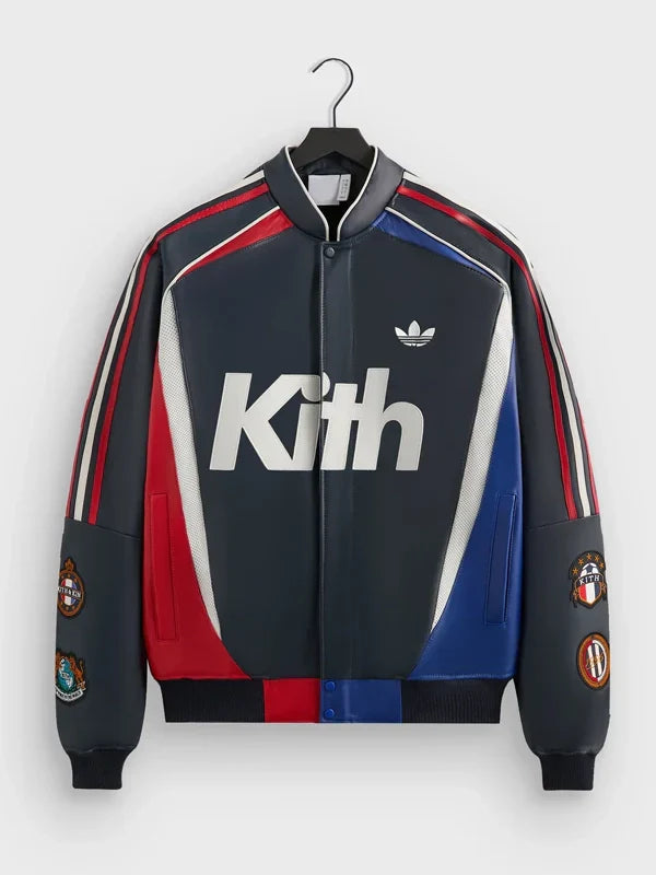 Man sees the Kith Adidas Football Bomber Jacket, man becomes happy. It is a testament of greatness, football greatness, and do you wanna know another interesting story? It is available for purchase at The Walter Jackets Store.