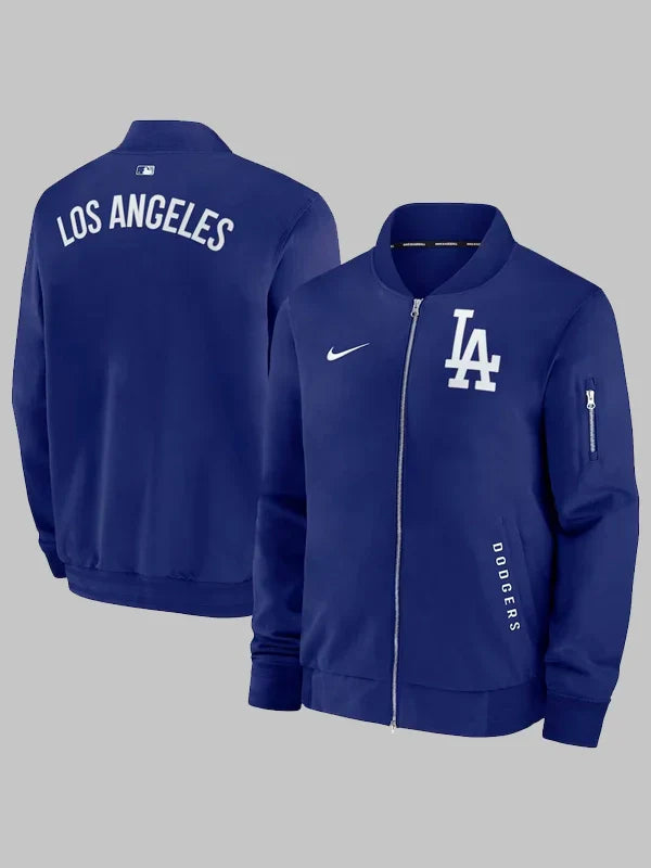 We only add jackets to our lineup when they do more than look good. This one? It’s tied to the rhythm of the season. From spring training chills to postseason nights, the Los Angeles Dodgers Blue Nike Dugout Bomber Jacket keeps showing up.