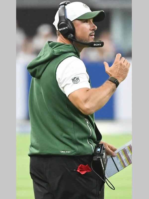 Show Packers pride with the Matt LaFleur Green Bay Packers Sleeveless Hoodie, perfect for fans. Shop at The Walter Jackets Store