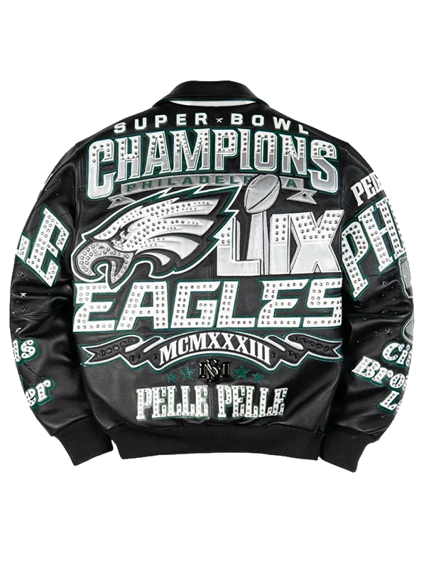 Recreated – Pelle Pelle 2025 Philadelphia Eagles Championship Black Leather Bomber Jacket