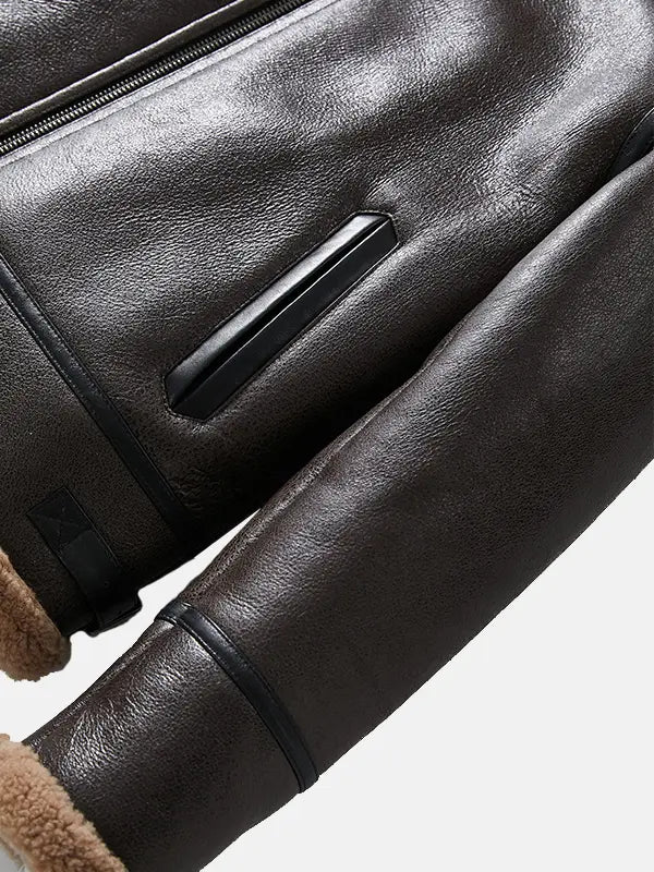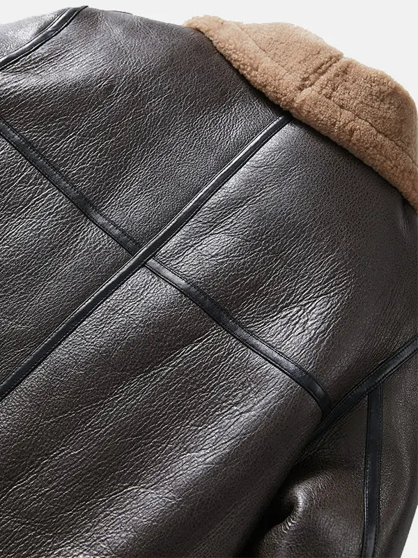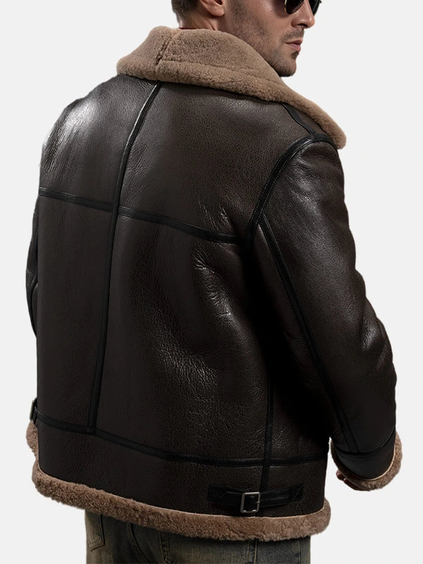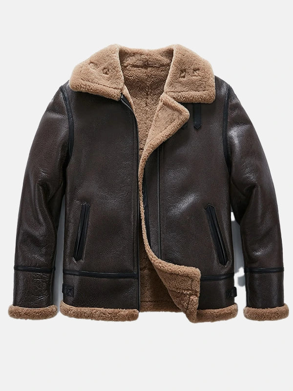Mens Brown Sheepskin Leather B-3 Bomber Shearling Flight Jacket