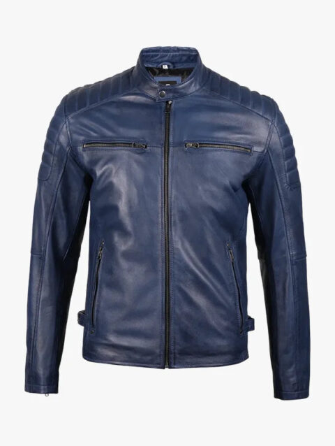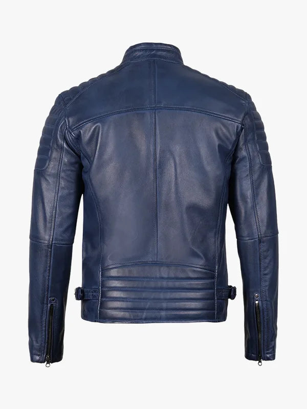 Waxed Cafe Racer Leather Blue Jacket | Vintage Biker Style Reinvented For Men’s