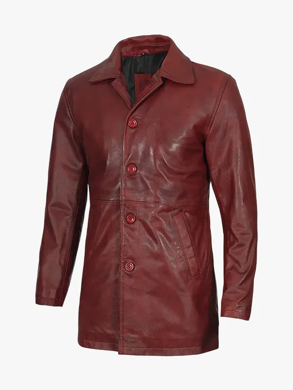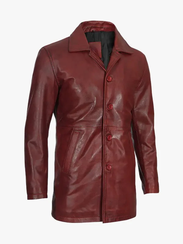 Men's Burgundy Real Lambskin Leather Car Coat