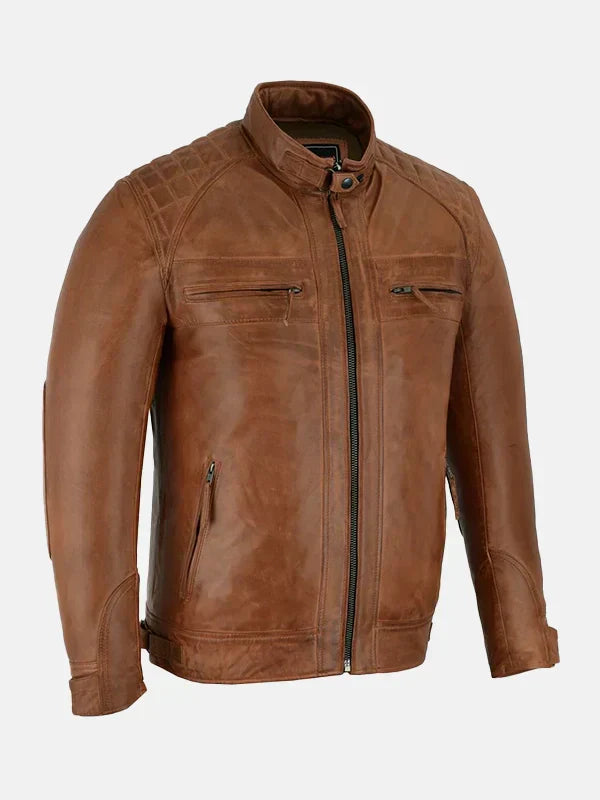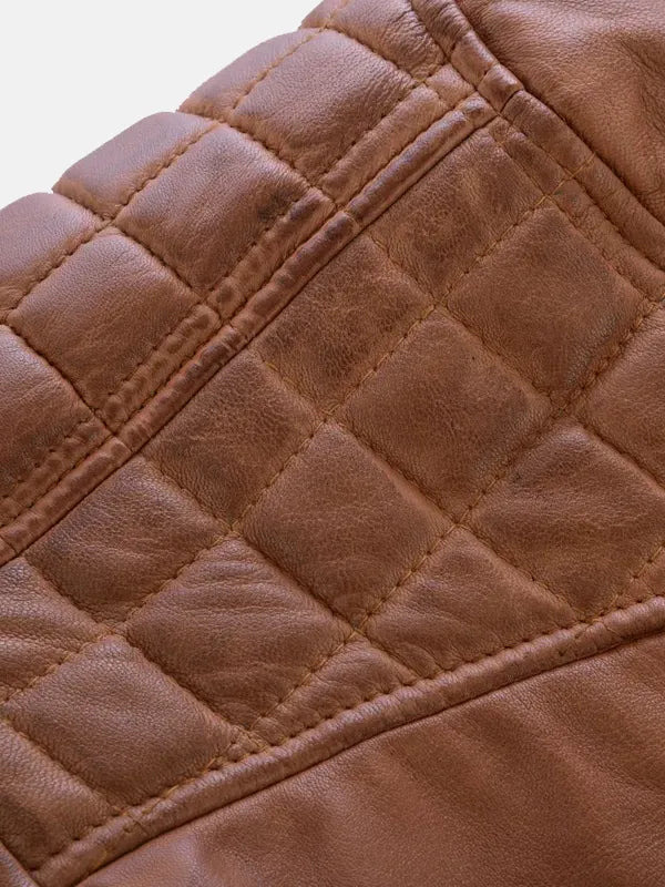 Men’s Quilted Brown Waxed Leather Jacket