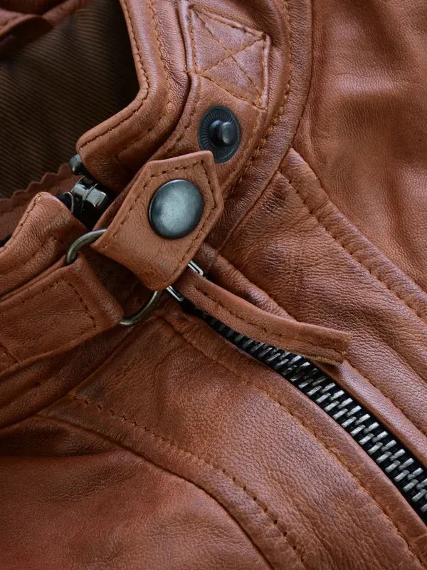Men’s Lambskin Brown Biker Leather Jacket