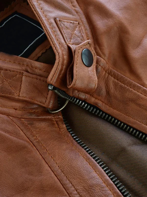 Men’s Cafe Racer Waxed Brown Leather Motorcycle Jacket