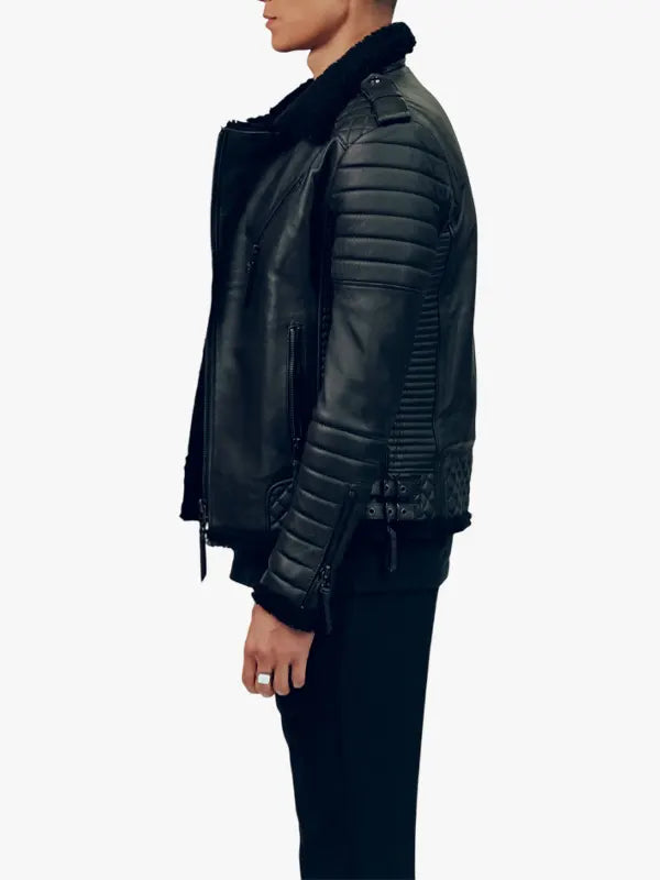 Re-Creation – Mens Kay Michaels Black Shearling Leather Jacket for Sale