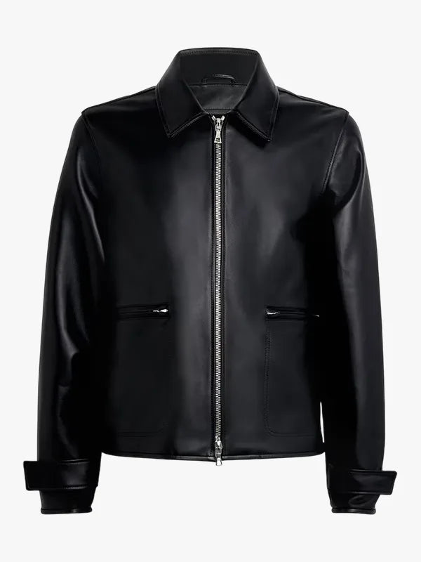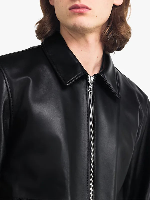 Re-Creation – Officine Generale Black Leather Milan Bomber Jacket For Sale
