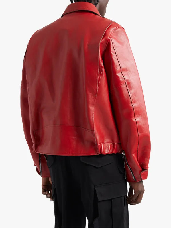Mens Red Bomber Leather Jacket