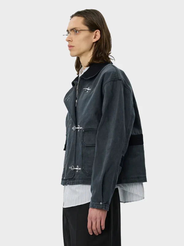 If you’re into pieces like the mfpen mail jacket, you’ll feel right at home with this one. It has that same easygoing vibe with a hint of workwear in the shape. But the clasp detail and slightly cropped finish give it its own identity. Whether you style it with straight-leg jeans, tapered trousers, or laid-back cargos, it adds just enough structure to pull your look together.