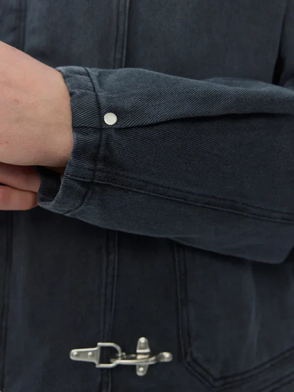 Simplicity is the statement here. This piece gives off a clean, relaxed feel that fits into just about any wardrobe. The slightly boxy fit and drop shoulders give it that effortless shape, while the washed black finish makes it look like it’s been part of your rotation for years. It’s the kind of jacket you can wear on city walks, chill weekends, or low-key nights out.