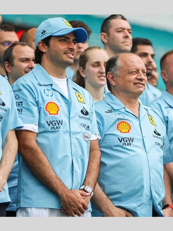 What feels like a holy grail is actually a shirt. Yes, we know you have fallen in love with the Scuderia Ferrari team Miami shirt, men. Understand that it is a limited-run piece, so fasten your seatbelts and pick up the pace to Add It To Bag at The Walter Jackets Store.