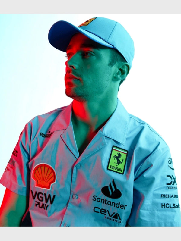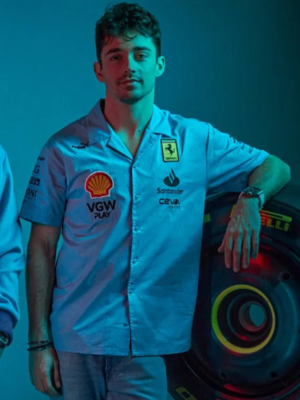 The exterior of the Ferrari blue Miami shirt is lightweight, and the interior isn’t stuffy either. It is made with pure cotton material and does not compromise on breathability, even if you slip an undershirt beneath it.