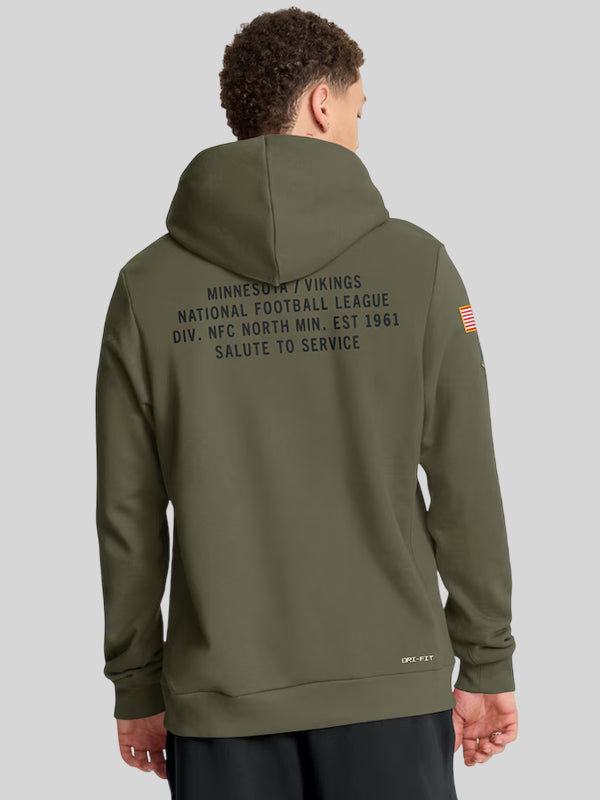Recreated – Minnesota Vikings Nike 2025 Salute to Service Sideline Standard Issue Dri-FIT Hoodie – Olive