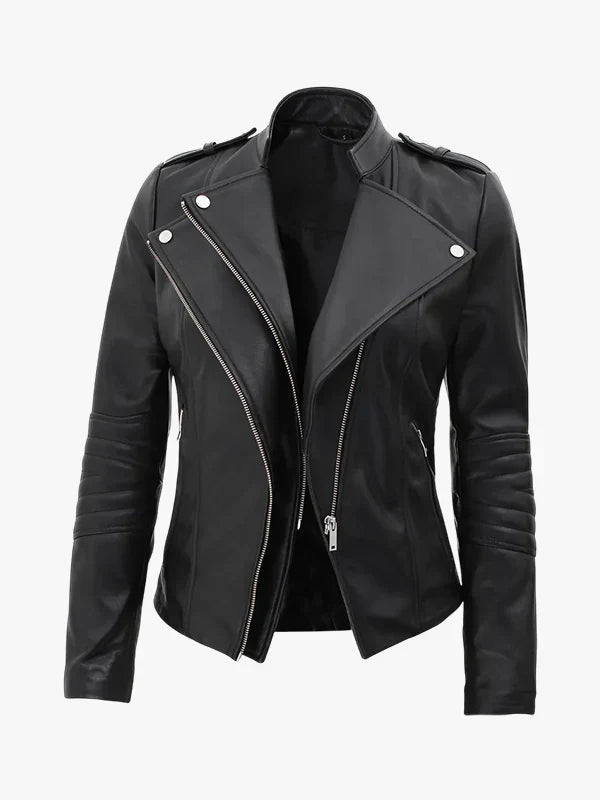 Monica Black Asymmetrical Leather Jacket For Women’s