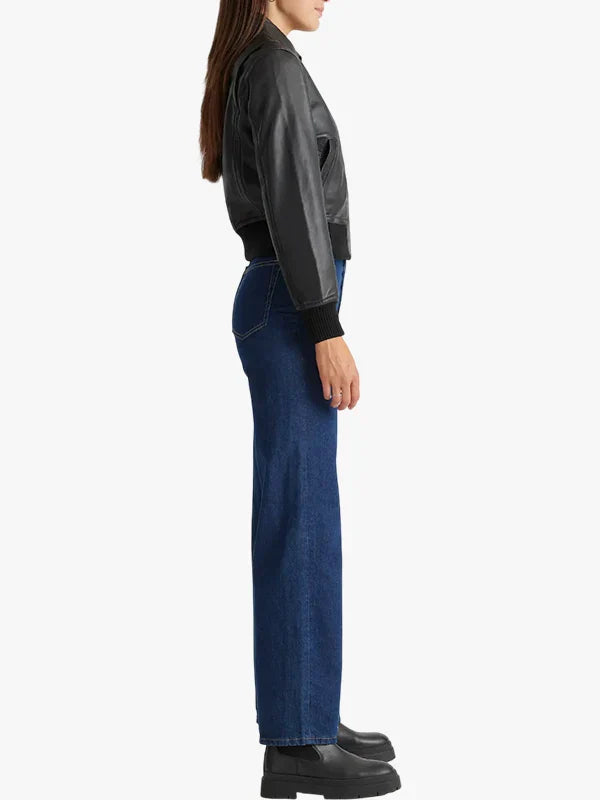 Quince 100% Washed Black Leather Bomber Jacket For Women’s
