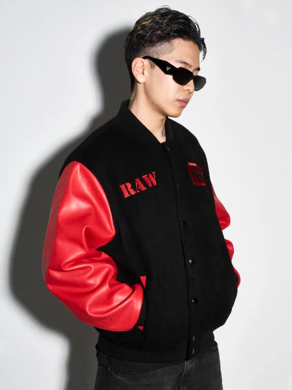 Recreated – Raw Is War Retro Varsity Jacket Black & Red
