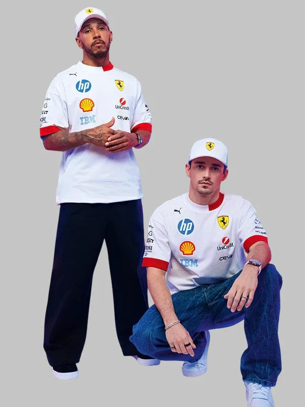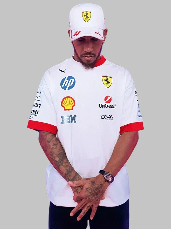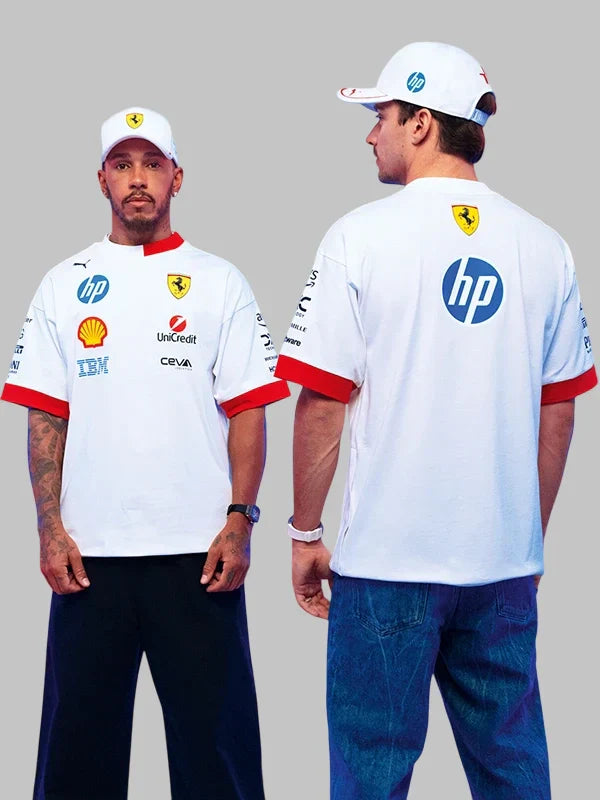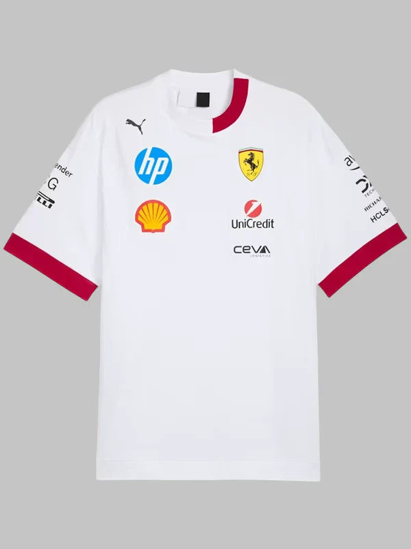 Re-Creation – Miami GP 2025 Puma Scuderia Ferrari Hp Men’s Drivers Tee White and Red