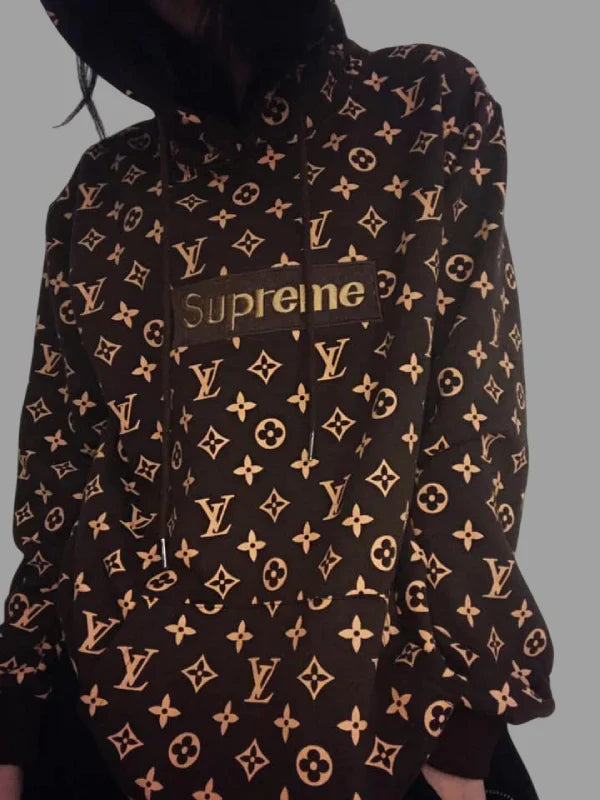 - The Louis Vuitton Supreme hoodie brown adds a rich tone that nods to traditional LV elegance