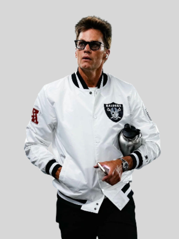 Las Vegas witnessed some high-profile cool as Tom Brady took the stands with the Tom Brady Raiders Bomber Jacket White and showed his pledge of allegiance to one of the most fearsome teams in the American Football verse. It is not just a jacket, it is an emotion, devotion, and commitment to the roots, all combined together in a standard fit high quality merchandise. No one makes money moves like Tom Brady when he makes waves in Las Vegas, donning this top-of-the-line bomber jacket that is phenomenal to say the least.