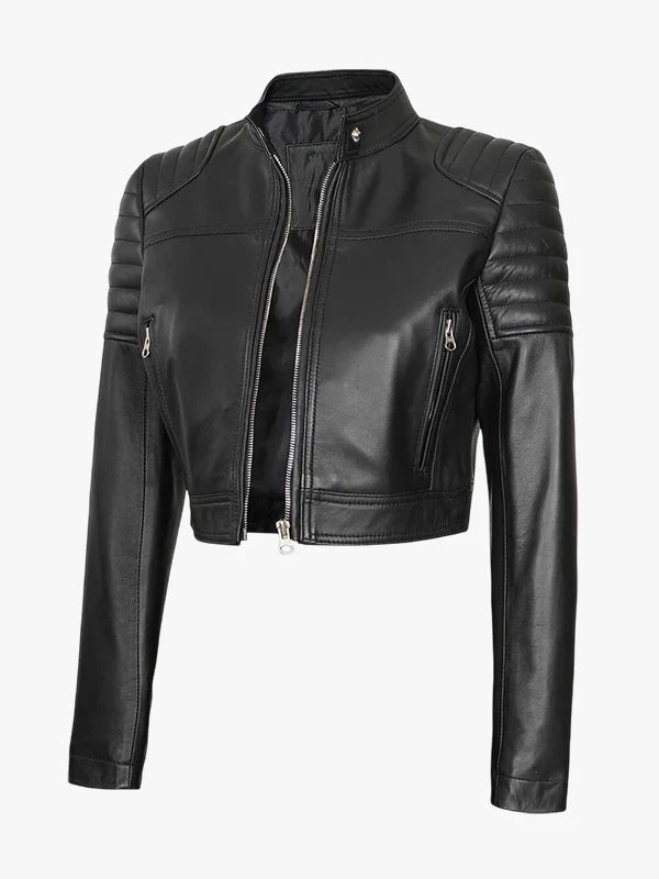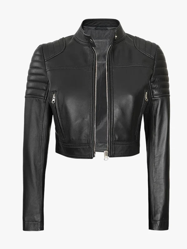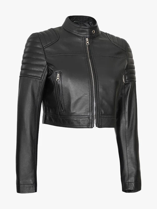 Be the first to review “Women’s Black Cropped Leather Moto Jacket” Cancel reply