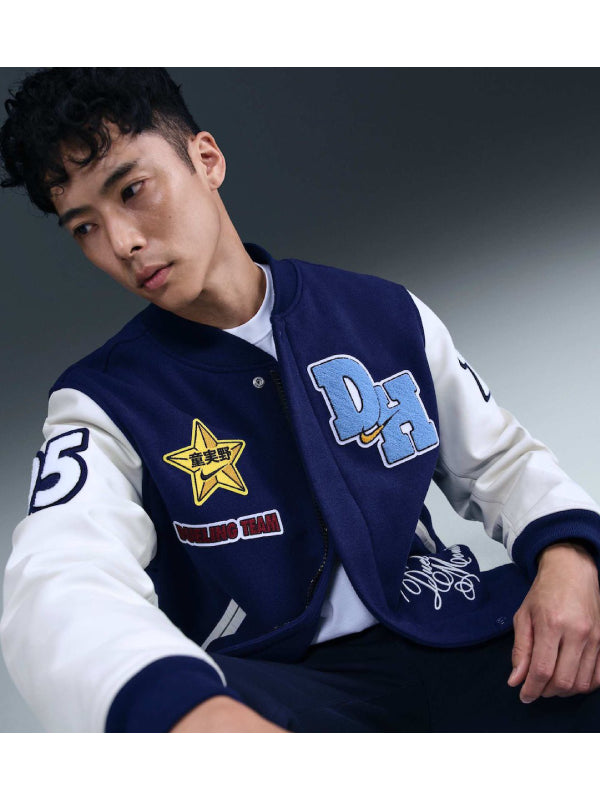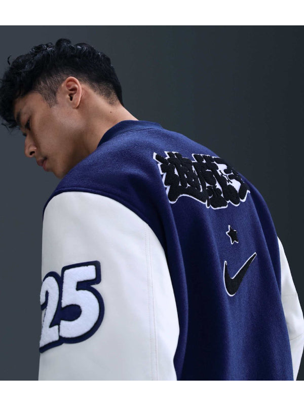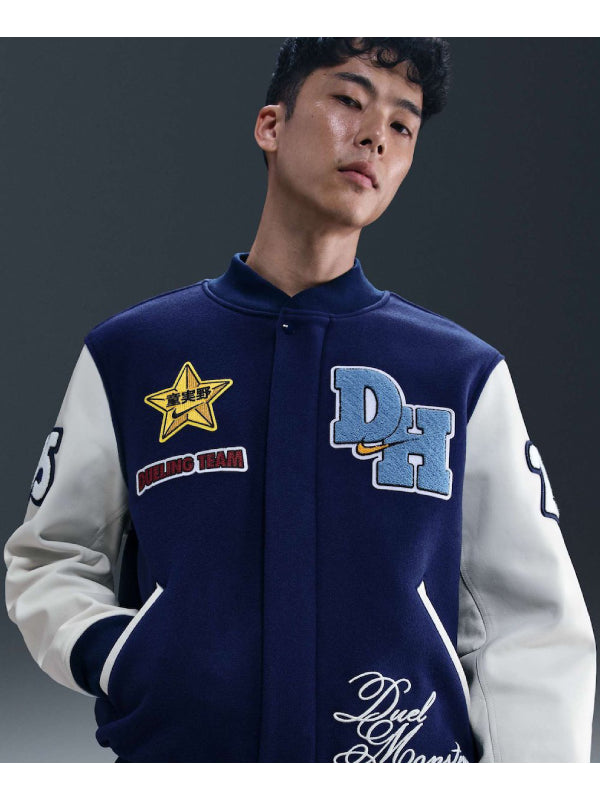 Recreated – Yu-Gi-Oh x Nike Destroyer Varsity Bomber Jacket Blue & White