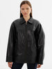 Recreation - Lamarque Theia Oversized Leather Bomber Jacket in Dark Brown & Black
